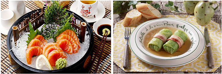 在日本料理的制作上,要求材料新鮮,切割講究,擺放藝術化,注重“色、香、味、器”四者的和諧統(tǒng)一,尤其是不僅重視味覺,而且很重視視覺享受。和食要求色自然、味鮮美、形多樣、器精良。而且,材料和調(diào)理法重視季節(jié)感。