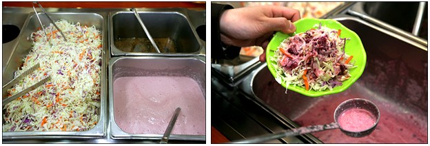 蔬菜色拉,色拉醬里有放葡萄,所以是紫色的