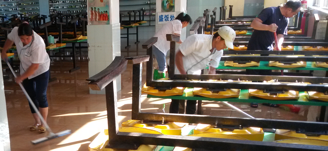 Cleaning staff must be prepared to dry and wet wipes. Table and stool wipe wipe cloth can not be mixed.